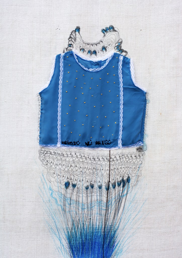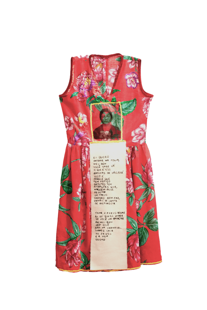 Through interactive assemblies and installations I incorporate traditional practices such as sewing, songs that mark a time and a culture around the memories of my maternal grandmother. The voice behind the song “Sabiá lá na gaiola” is my grandmother’s. The music is by Hervê Cordovil and Mário Viera, 1950.