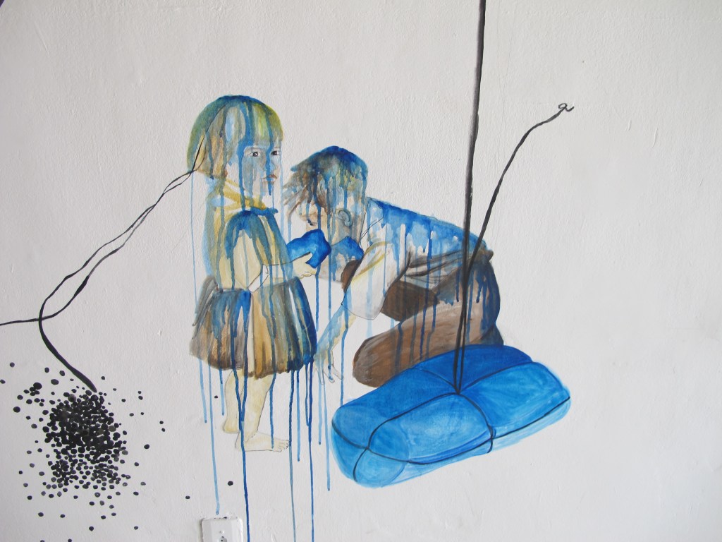 Watercolor about wall, drawings large.